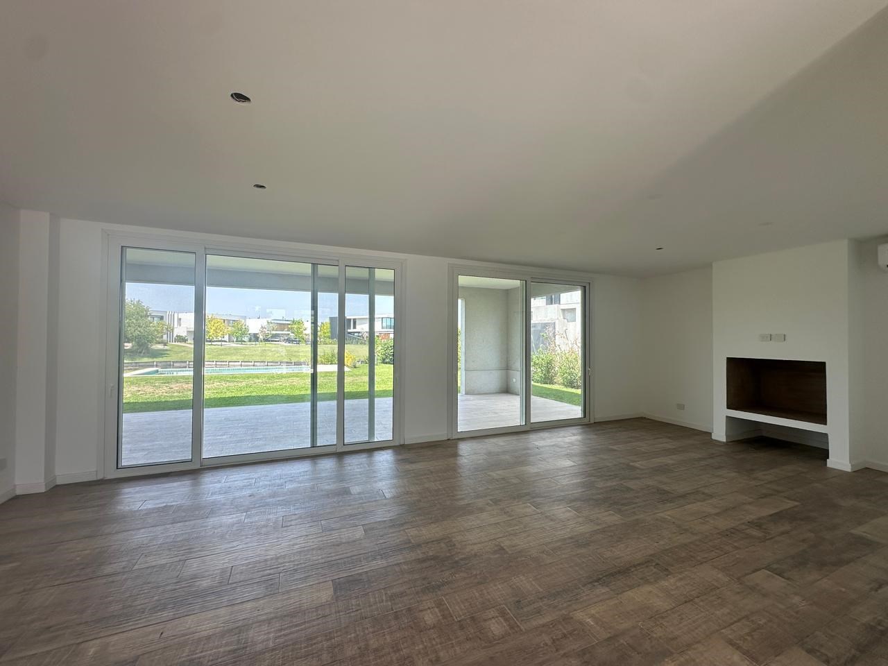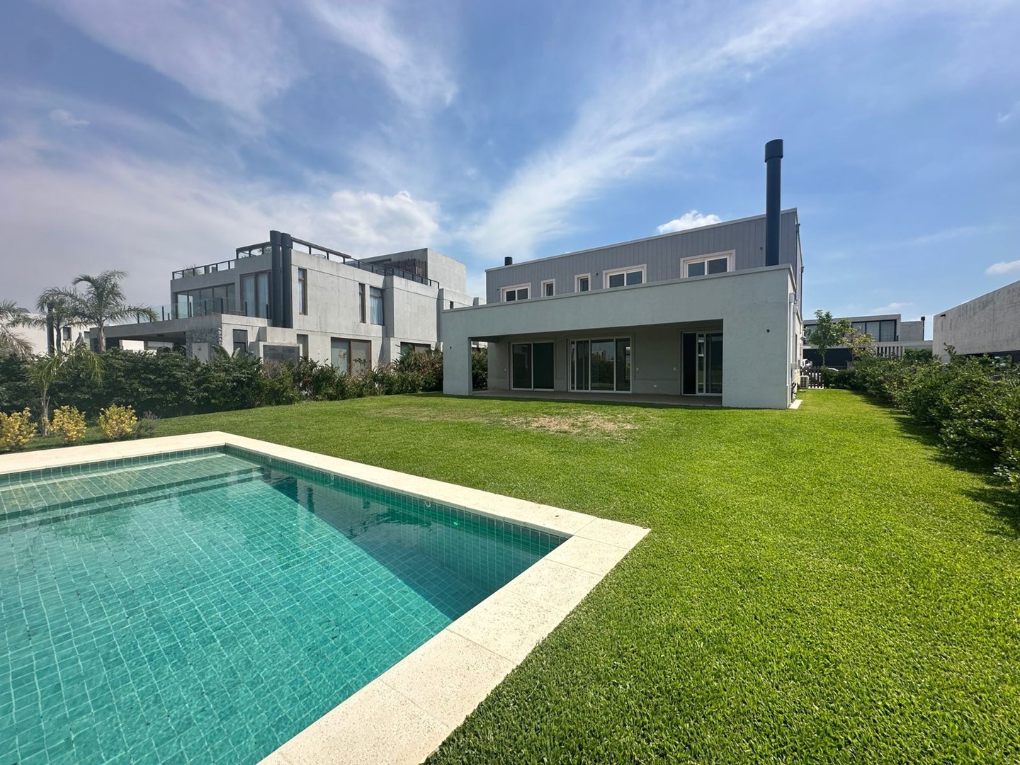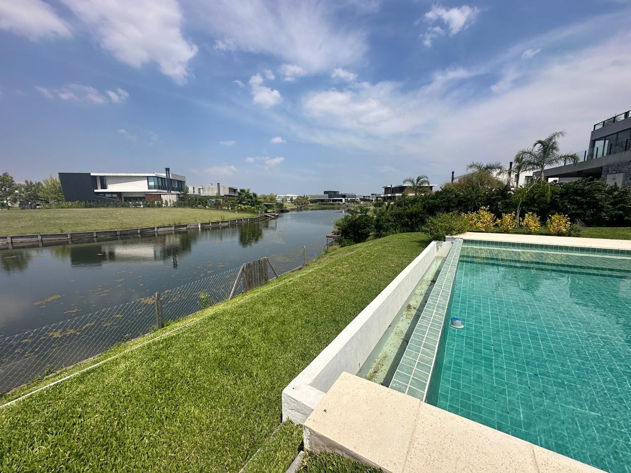 Hermosa casa desarrollada en dos plantas, con diseño contemporáneo y excelente calidad constructiva, ubicada sobre lote al agua en el barrio Virazón, Nordelta. Ambientes amplios, funcionales y con grandes ventanales que integran interior y exterior de manera natural. Planta Baja Hall de recepción. Gran living comedor con chimenea y ventanales de piso a techo con vista plena al lago. Cocina de generosas dimensiones, con barra e integrada a un playroom con salida directa a la galería. Doble circulación desde el living y desde el hall de entrada. Escritorio o dormitorio de huéspedes con toilette con ducha (ideal suite en planta baja). Lavadero con acceso independiente lateral. Dependencia de servicio completa. Planta Alta Amplio hall de distribución con espacio abierto tipo playroom o escritorio (posibilidad de cerrarlo). Placard de ropa blanca. Master suite de gran tamaño, con vestidor y baño completo con bañadera y ducha. Tres suites adicionales, todas con placard. Dos de ellas con terraza propia. Exterior Espectacular galería amplia con parrilla. Pileta. Jardín con vista abierta al lago. Detalles Constructivos Pisos de porcelanato Carpinterías de PVC blanco con doble vidrio hermético (DVH), perfiles Tecnocom de tecnología alemana Puertas interiores modelo Wood Touch Calefacción por losa radiante Caldera Caldaia Sanitarios Roca línea Mónaco Griferías Hidromet Silver Lever / Hydros Zen Lever Mesadas de Silestone blanco Revestimientos en baños porcelanato tipo mármol Carrara CMCPSI7175 Sk