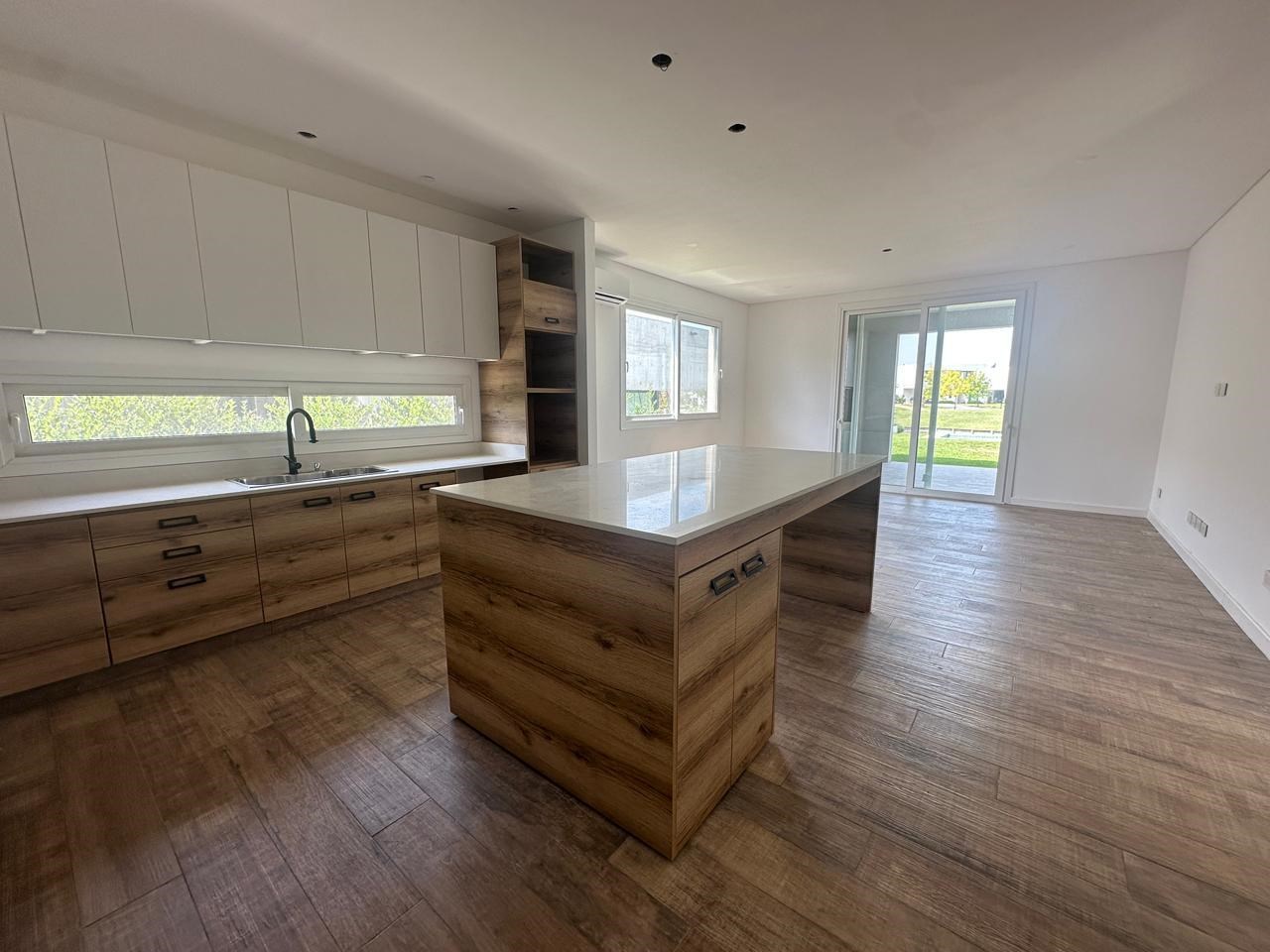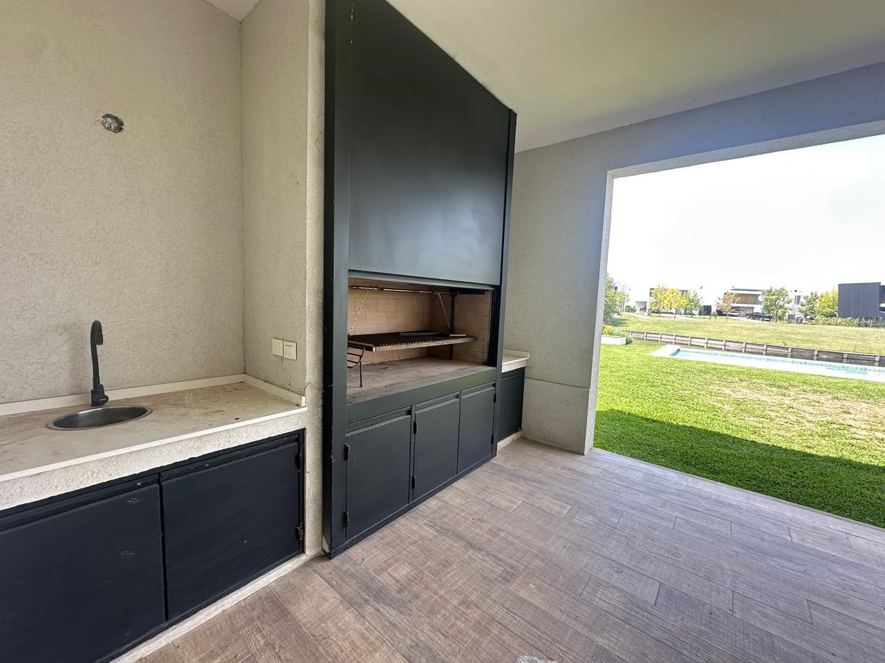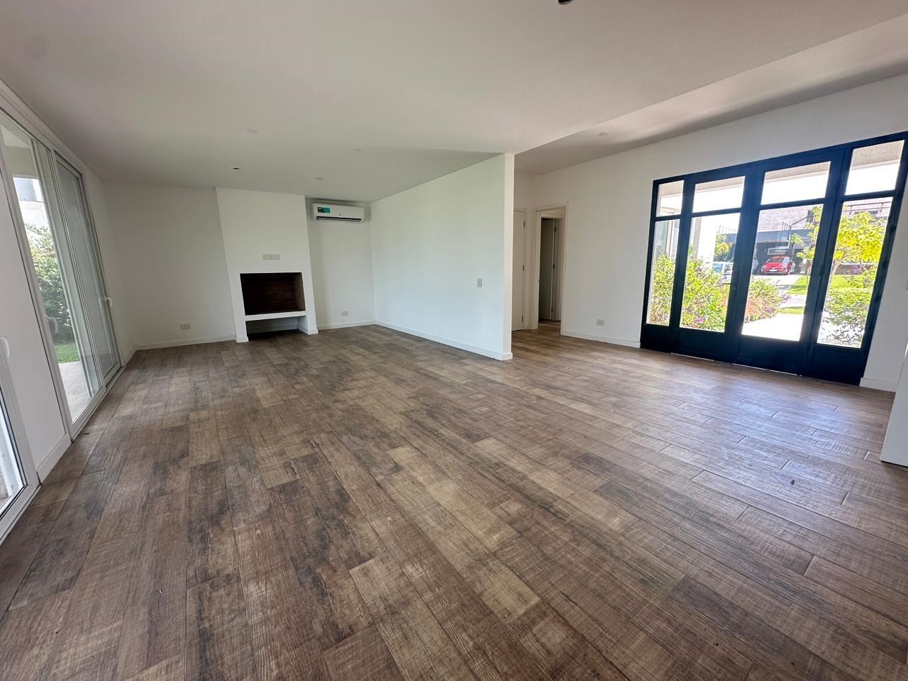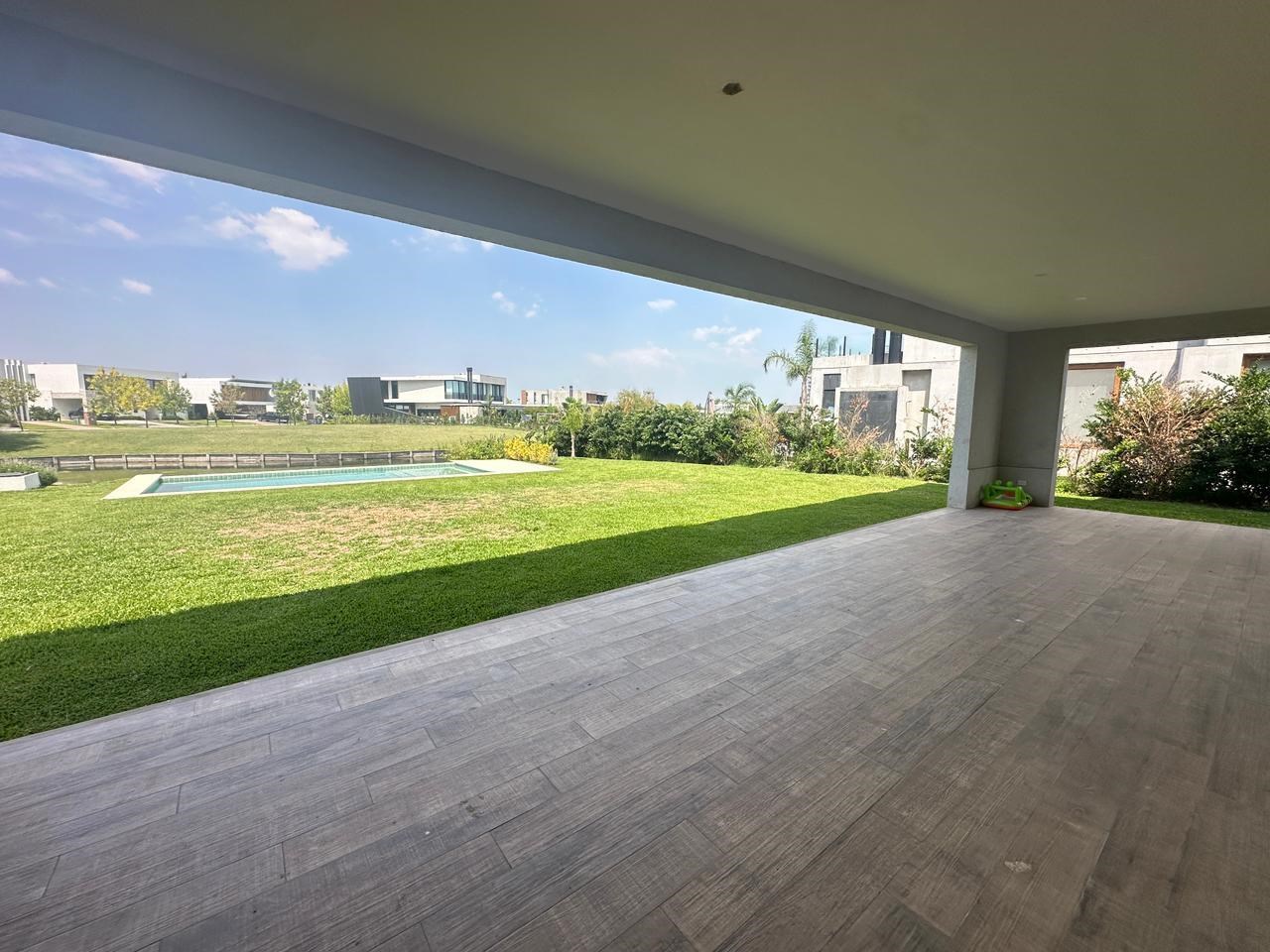 Hermosa casa desarrollada en dos plantas, con diseño contemporáneo y excelente calidad constructiva, ubicada sobre lote al agua en el barrio Virazón, Nordelta. Ambientes amplios, funcionales y con grandes ventanales que integran interior y exterior de manera natural. Planta Baja Hall de recepción. Gran living comedor con chimenea y ventanales de piso a techo con vista plena al lago. Cocina de generosas dimensiones, con barra e integrada a un playroom con salida directa a la galería. Doble circulación desde el living y desde el hall de entrada. Escritorio o dormitorio de huéspedes con toilette con ducha (ideal suite en planta baja). Lavadero con acceso independiente lateral. Dependencia de servicio completa. Planta Alta Amplio hall de distribución con espacio abierto tipo playroom o escritorio (posibilidad de cerrarlo). Placard de ropa blanca. Master suite de gran tamaño, con vestidor y baño completo con bañadera y ducha. Tres suites adicionales, todas con placard. Dos de ellas con terraza propia. Exterior Espectacular galería amplia con parrilla. Pileta. Jardín con vista abierta al lago. Detalles Constructivos Pisos de porcelanato Carpinterías de PVC blanco con doble vidrio hermético (DVH), perfiles Tecnocom de tecnología alemana Puertas interiores modelo Wood Touch Calefacción por losa radiante Caldera Caldaia Sanitarios Roca línea Mónaco Griferías Hidromet Silver Lever / Hydros Zen Lever Mesadas de Silestone blanco Revestimientos en baños porcelanato tipo mármol Carrara CMCPSI7175 Sk