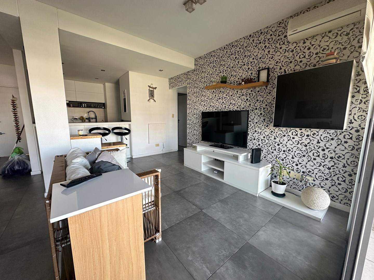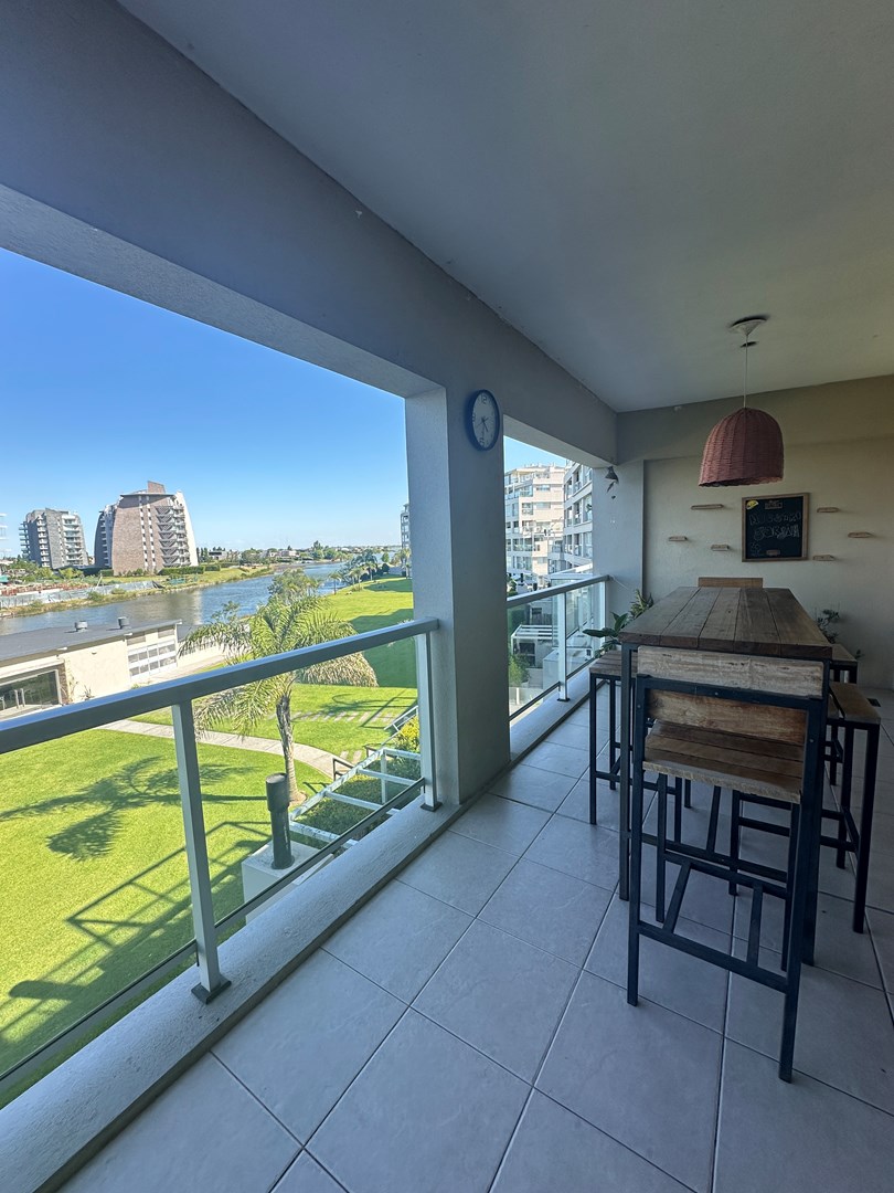 Impecable departamento con vista al agua APTO CREDITO! Hermoso departamento en venta en Bigua, Marinas de Portezuelo. Vista al lago central de nordelta, desde una terraza de gran tamaño. Es un dos ambientes grande, con posibilidad de hacer un segundo dormitorio y transformarlo en 3 ambientes. Tiene 2 baños completos. Cocina semi integrada con barra hacia el living. Muebles de sobre y bajo mesada. Horno y anafe eléctricos. Todo en excelente estado. 3 equipos de aire acondicionado frio calor. Baño completo con bañadera. Dormitorio en suite con vestidor y baño complejo con salida al balcón y vista al agua. Desde ambos ambientes se sale al balcón terraza rectagular con parrilla y una vista espectacular! Cochera y baulera. Marinas de Portezuelo cuenta con una hermosa pileta de natación sobre el lago de Nordelta y un SUM con gran galería también sobre el lago. El complejo cuenta con guardería de Kayaks y muelle de salida al lago. CMCPSI 6421 SK